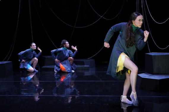 Avec Glottis, Flora Détraz propose un voyage insolite dans les profondeurs insondées du corps humain. Point de départ : la glotte. Cette partie du larynx où se situent les cordes vocales offre à la chorégraphe la possibilité d’explorer une variété de voix et de sons non liés à la langue parlée, ni à son cadre culturel et social. Nous sommes ailleurs. Bien plus : l’exercice produit des états de conscience proches de l’hypnose. De ces découvertes et visions, Flora Détraz extrait une chorégraphie réunissant concert hypnotique et danse cavernicole. Trois figures d’oracles, somnambules et aveugles, illuminent la scène obscure et sondent un monde originel, préhistorique ou à venir. Dans une fascinante transformation polyphonique des corps et des métamorphoses qu’engendrent les sons, Glottis est à vivre comme une aventure animale et poétique, une expérience aux accents médiumniques, qui nous ouvre les yeux sur des zones inconnues et intimes.