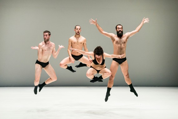 Abondance, joie et splendeur sont les canons des trois Grâces que Canova réalise entre 1812 et 1817. À la perfection du sculpteur répond la virtuosité des trois danseurs de Graces, libérés de leurs stéréotypes corporels masculins et devenus Aglaé, Euphrosyne et Thalie en slip et chaussettes noires. Libérée elle aussi, Silvia Gribaudi traverse la scène, les genres et les rôles, distille l’humour, interroge la beauté. S’il fallait définir celle-ci en une phrase, ce serait pour la chorégraphe, danseuse et performeuse italienne : « Oh yes, you have the power! » Car Silvia Gribaudi aime se définir comme « autrice du corps », portant sur scène des corps dansants inattendus. Dont le sien. Imperturbable, respirant fort, il ne dissimule ni effort ni rougeur derrière les douloureux cache-misère de la perfection classique sculptée dans le marbre blanc.